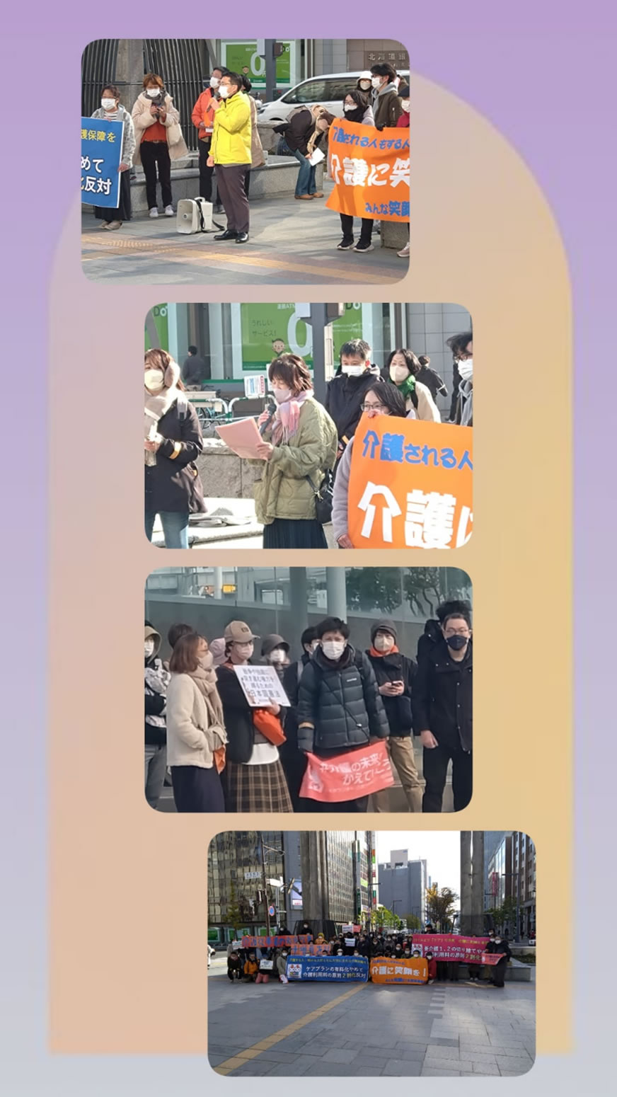 重すぎる保険料や利用料の負担増に反対、よりよい介護をより利用しやすくしてほしい、国の責任で介護保障の充実を!介護労働者の賃金労働条件の引き上げを!とアピールしました。